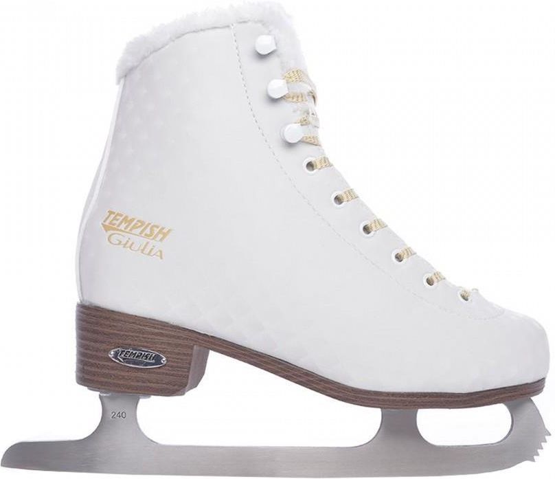 Damskie łyżwy - Kolor Biały, Materiał skorupy łyżew PVC STRUCTUR, Materiał wyściółki wełna syntetyczna, Podeszwa PVC, Ostrza stal nierdzewna, System mocowania Koronki