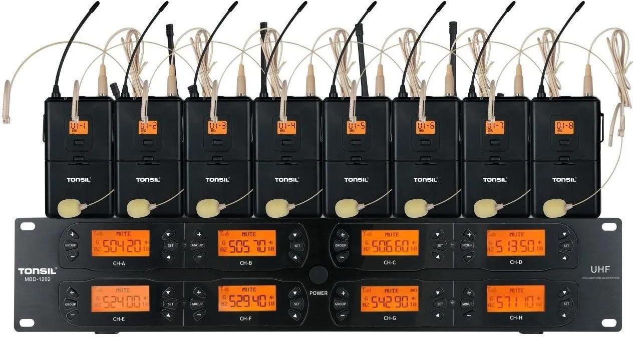 Tonsil MBD 1202 - System bezprzewodowy (baza) + 8 szt. mikrofonów bezprzewodowych nagłownych Odkryj niezawodną jakość dźwięku i pełną swobodę ruchu z Tonsil MBD 1202 – profesjonalnym systemem bezprzewodowym (baza) z 8 mikrofonami nagłownymi, stworzonym dla najbardziej wymagających użytkowników. …