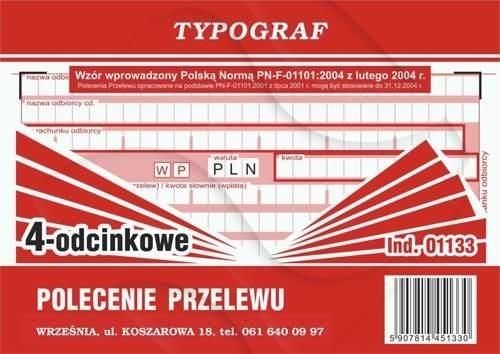 Typograf Polecenie Przel. Bank. A6 WP-4 (4-odc.) 01133 Zabrze