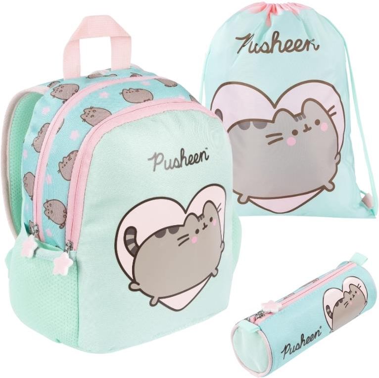 • Zestaw St. Majewski Plecak Mały Przedszkolny Wycieczkowy + Worek Na Obuwie Buty Sportowy + Piórnik Szkolny Tuba Pusheen Mint