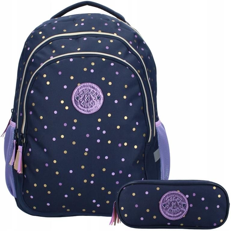 • Zestaw Vadobag Plecak Szkolny Młodzieżowy + Piórnik Dwukomorowy Bez Wyposażenia Milky X Kiss Granatowy