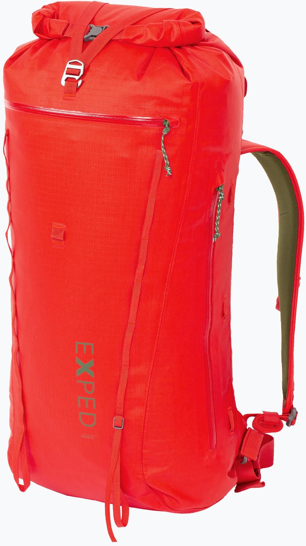 Plecak wspinaczkowy Exped Serac 45 l chili M Model/kod produktu: Serac 45 EXP337-45 Kolor wiodący: Czerwony Pojemność: 45 l Marka: Exped Kraj pochodzenia marki: Szwajcaria Płeć: Kobieta, Mężczyzna Sezon: Całoroczne Wymiary: 69 x 32 x 25 cm Przyjazność środowisku: PFC-Free Waga: 880 g Materiał: Nylon, TPU Sport: Wspinaczka Pas piersiowy: Tak Pas biodrowy: Tak Rodzaj zapięcia: Typu roll-top Technologie: DWR Rozmiar: M