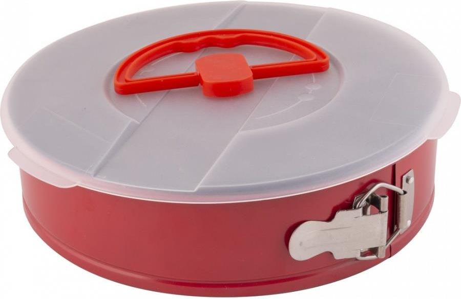 Forma do Pieczenia Tortownica Dolce Lamart LT3104 26x6,5cm Forma do tortu LT3104 firmy Lamart nieprzywierającą powłoką, solidnym zamknięciem i pokrywką to niezbędnik dla każdego cukiernika lub miłośnika pieczenia w domu. Z pewnością posłuży Ci przez długi czas i wykonasz z nią wiele wspaniałych tortów. Powłoka non stick | Stal węglowa | Pokrywa Cechy Średnica: 26 cm Wysokość: 6,5 cm Materiał wykonania: stal węglowa Kolor: czerwony/czarny/przezroczysty Powłoka non stick Pokrywka w zestawie Powłoka nieprzywierająca Tę formę wyposażono w powłokę non stick. Jest to duże ułatwienie podczas przygotowywania tortu, ponieważ pozwala z łatwością wyjąć ciasto z formy, bez jego zdeformowania czy przełamania. Idealne blaty to niezbędnik przy tego typu ciastach, dlatego jest to duża zaleta tego modelu. Wykonana z odpornej stali węglowej Stal węglowa to bardzo trwały i wytrzymały materiał, dlatego też jest często wykorzystywany przy różnego rodzaju formach. Również w tym modelu zdecydowano się na jej użycie, dlatego też charakteryzuje go przedłużona żywotność. Co więcej idealnie sprawdza się ona nawet przy bardzo wysokich temperaturach. Można jej używać w temperaturze od - 60 do aż 230 °C bez zmian jej parametrów technicznych oraz funkcjonalności. Łatwe czyszczenie Zastosowanie powłoki nieprzywierającej i stali węglowej przy produkcji tej formy do tortu sprawiło, że jest ona także bardzo łatwa w czyszczeniu. Zapomnij o długim namaczaniu przypaleń czy szorowaniu poszczególnych elementów. Ten model bardzo sprawnie umyjesz wykorzystując letnią wodę, płyn do naczyń i miękką ściereczkę. Śmiało możesz też włożyć ją do zmywarki. Pokrywka przedłużająca świeżość Do zestawu dołączono pokrywę z tworzywa sztucznego, która zabezpiecza ciasto przed wyschnięciem czy zmianą kształtu. Dodatkowo ma też ona solidny uchwyt, więc śmiało możesz zabrać swój tort w dowolne miejsce. To też idealna opcja, jeśli planujesz imprezę w plenerze i chcesz chronić swoje wypieki. Optymalna średnica Średnica 26 cm to optymalna wielkość dla większości tortów. Dzięki temu forma ta będzie maksymalnie użyteczna i z pewnością wykorzystasz ją wiele razy nie tylko do pieczenia klasycznych tortów, ale także do innych wypieków. Idealnie sprawdzi się też do serników czy biszkoptów z owocami. Możliwość przechowywania w lodówce Tort najlepiej przechowywać w lodówce, dlatego też ta forma została przygotowana tak, aby można było bez problemu korzystać z niej w ten sposób. Dzięki temu Twoje kremy, bita śmietana owoce czy galaretka, będą wyglądały nieskazitelnie przez cały czas, a ciasto będzie dłużej zdatne do spożycia. To duży atut tego produktu. Solidne zamknięcie Dzięki możliwości zdjęcia bocznej części formy do tortu, znacznie łatwiej jest wydobyć idealny kształt pieczonego ciasta. Wiele osób jednak obawia się takich akcesoriów, ponieważ często masa się z nich wylewa. Ten model wyposażono w solidne zamknięcie, które nie przecieka, dlatego bez obaw możesz z niego korzystać nawet przy lejących konsystencjach. Pomysł na prezent Jeśli masz w domu zapalonego cukiernika lub osobę, która uczy się robienia wypieków, taka forma wysokiej jakości na pewno jej się spodoba. Ma ona także niezwykle estetyczny wygląd, więc pięknie będzie prezentowała się w kuchni obdarowanej osoby oraz na zdjęciach. To aspekt, który warto wziąć pod uwagę. Sprawdzona marka Lamart to marka z dużym doświadczeniem, która produkuje akcesoria do pieczenia od lat. Dzięki temu masz pewność, że wybierając formy z ich oferty, zyskujesz produkty przemyślane, wykonane z najlepszych materiałów, które na pewno posłużą Ci przez długi czas. To dobry wybór dla osób, które stawiają przede wszystkim na jakość!
