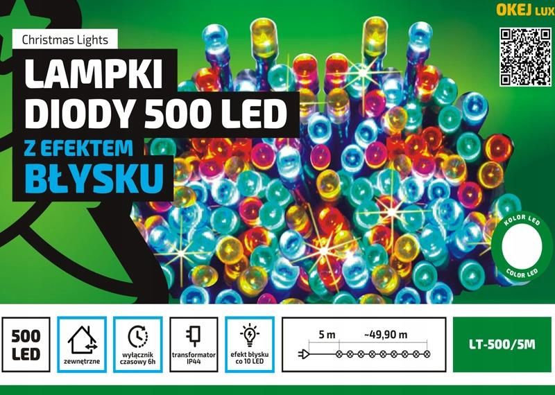 Lampki choinkowe zewnętrzne 500 Led 50m Błysk IP44 Żagań