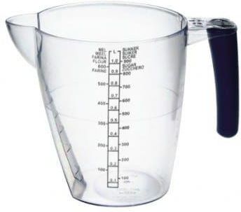 Przezroczysty dzbanek z miarką, miękkim uchwytem i dwustronnym nadrukiem skali z przodu (wewnątrz) i z boku do łatwego czytania. Skala w 3. wielkościach, również (decy)litr, dla cukru i mąki w pięciu językach na wszystkich rozmiarach. Łatwy uchwyt i bardzo duża wylewka dla łatwego przelewania. Dane …
