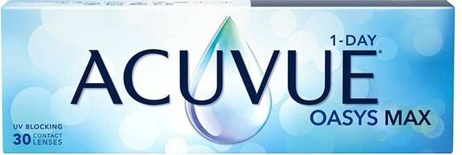 Acuvue Oasys 1-Day Max 8.5 30PMożesz wymagać więcej od swoich soczewek – postaw na MAX komfort!*1 Wyjątkowe połączenie dwóch technologii ACUVUE® w zaawansowanych soczewkach kontaktowych OASYS® MAX 1-DAY. Technologia TearStable™ obniża parowanie łez i wydłuża stabilność filmu łzowego a OptiBlue™ redukuje negatywny wpływ szkodliwego, niebiesko-fioletowego światła otaczającego nas z każdej strony oraz minimalizuje rozpraszanie światła. Dzięki soczewkom kontaktowym ACUVUE® OASYS MAX 1-DAY poczuj cał