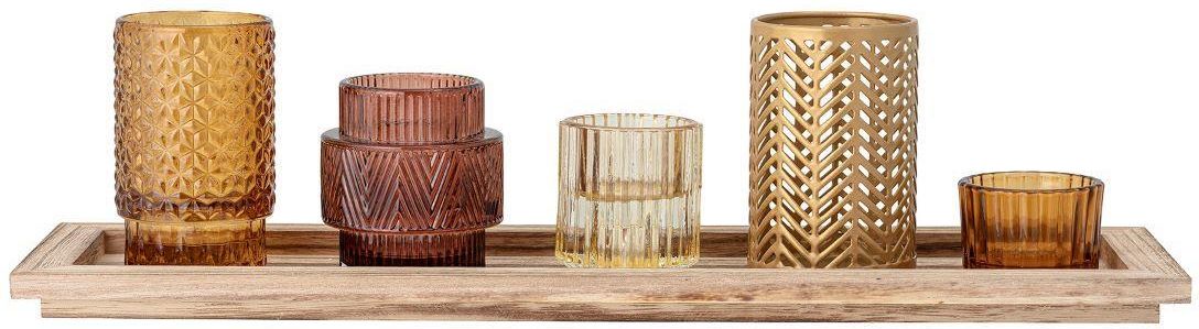 Bloomingville Świeczniki Sanga Brązowe Z Tacą 6 El. 109739 Zagórów