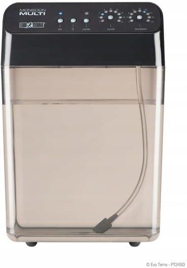 Exo Terra Monsoon Multi to programowalny zraszacz automatyczny. Utrzymuje optymalną wilgotność, poprzez generowanie drobnej mgły w zaprogramowanych odstępach czasu, której długość i częstotliwość można łatwo regulować w zależności od potrzeb zwierzęcia lub roślin. Częste zaparowywanie pomaga w …