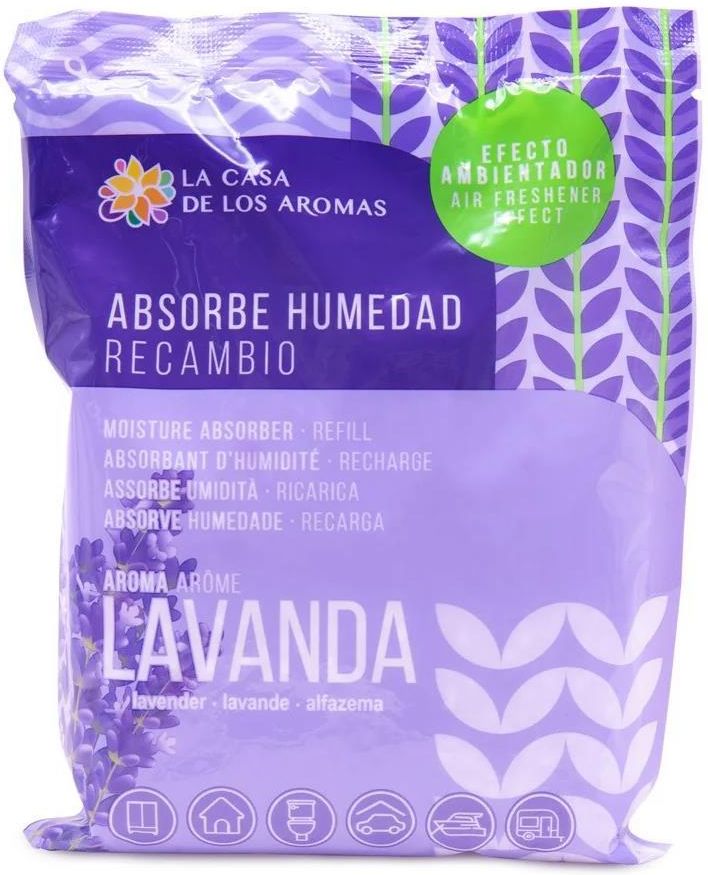 La Casa de los Aromas Pochłaniacz wilgoci zapas Lawenda 300g Czy jesteś zmęczony zmaganiem się z wilgocią, która wydaje się nie mieć końca w Twojej łazience, szafkach lub małych przestrzeniach? Ten pochłaniacz wilgoci o zapachu lawendy to rozwiązanie, którego szukałeś. Ten rewolucyjny produkt został zaprojektowany, aby zwalczać wilgoć i nadać Twoim przestrzeniom świeży i relaksujący charakter dzięki delikatnemu zapachowi lawendy, który przenika atmosferę. Uzupełnij kulkami przeciwwilgociowymi o wysokiej zdolności absorpcji. Nadaje się do różnych pomieszczeń w domu, w tym garderób, łazienek i garaży, a także przyczep kempingowych i małych łodzi. Producent: La Casa de los Aromas Linia: Pochłaniacze wilgoci