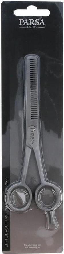 Nożyczki do przerzedzania włosów Parsa zapewniają stabilne cięcie podczas przerzedzania włosów Nożyczki do przerzedzania włosów ze stali nierdzewnej. Nożyczki są wyposażone w śruby radełkowane, które zapewniają stabilne cięcie przerzedzonych włosów i zapobiegają wyślizgnięciu się nożyczek z dłoni.