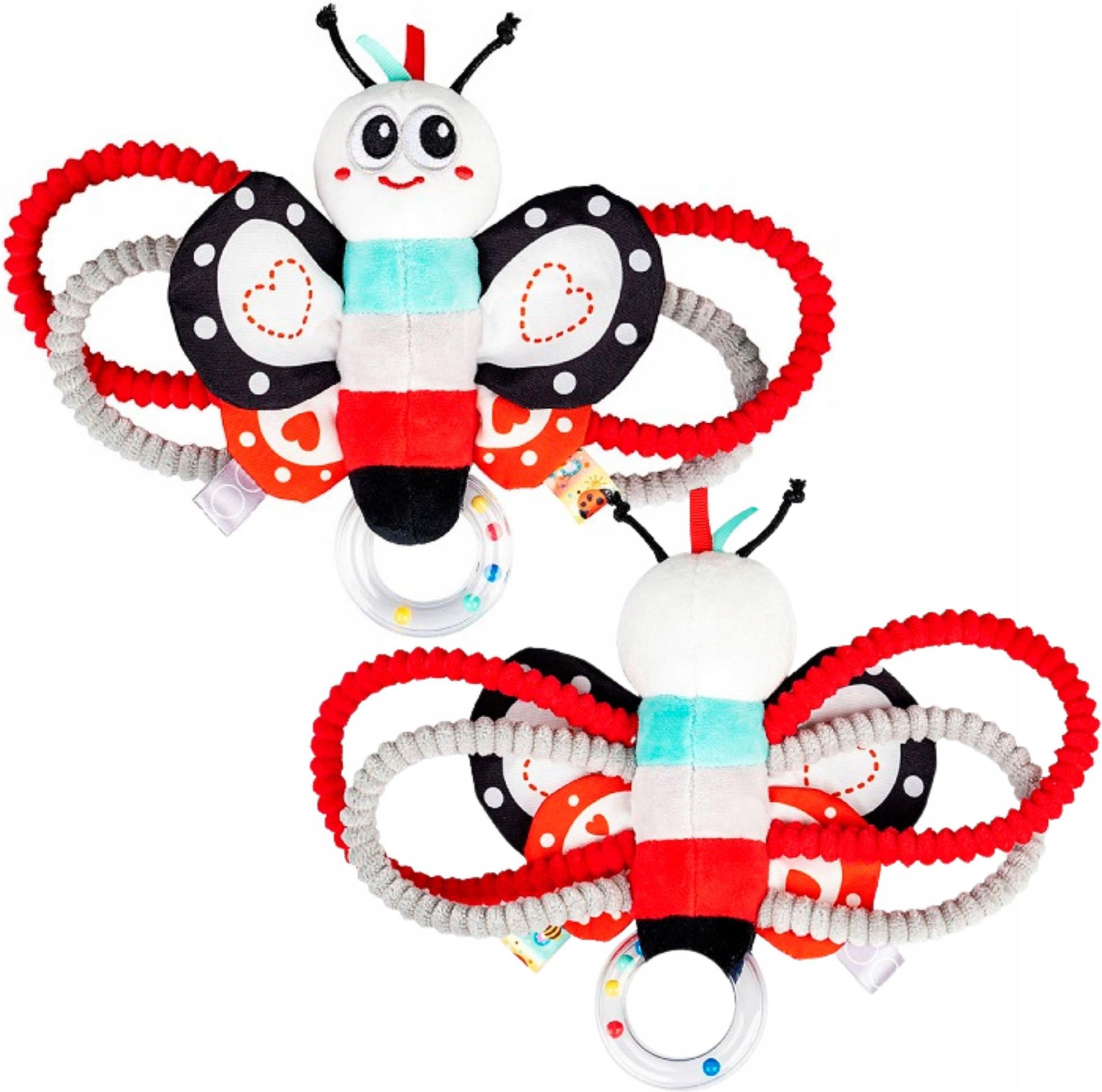Grzechotka Zabawka Sensoryczna Motyl Antek z Dzwoneczkiem BALIBAZOO 0m+ Kontrastowy Motyl Antek – pierwszy sensoryczny przyjaciel maluszka Motyl Antek to urocza, kontrastowa zabawka sensoryczna, która wspiera rozwój zmysłów i zdolności poznawczych niemowląt już od narodzin. Zróżnicowane faktury, szeleszczące skrzydełka, dzwoneczek i elementy łatwe do chwytania zachęcają dziecko do aktywnego odkrywania świata. To idealny pierwszy towarzysz zabaw – miękki, bezpieczny i pełen niespodzianek. Najważniejsze zalety Kontrastowe kolory – idealne dla najmłodszych, wspierają rozwój wzroku. Zróżnicowane faktury materiałów – pobudzają zmysł dotyku i ciekawość dziecka. Szeleszczące skrzydełka – zachęcają do chwytania i uczenia się zależności przyczynowo-skutkowych. Wbudowany dzwoneczek – delikatny dźwięk urozmaica zabawę i rozwija słuch. Elastyczne, fakturowane obręcze – ułatwiają chwytanie małym rączkom i ćwiczą motorykę. Grzechotka i materiałowe metki – dodatkowe bodźce, które maluszki uwielbiają. Bezpieczna od urodzenia – doskonała jako pierwszy prezent dla noworodka. Cechy produktu Dzwoneczek wewnątrz zabawki Szeleszczące skrzydełka Grzechotka Elastyczne, fakturowane obręcze do chwytania Materiałowe metki Kontrastowe kolory Zróżnicowane faktury Wiek: 0m+ Dlaczego warto? Motyl Antek to nie tylko uroczy wygląd, ale przede wszystkim zestaw rozwijających funkcji zamkniętych w miękkiej, bezpiecznej formie. Idealny do wózka, łóżeczka i pierwszych zabaw na brzuszku — pomoże maluszkowi poznawać świat poprzez dotyk, wzrok i dźwięki.