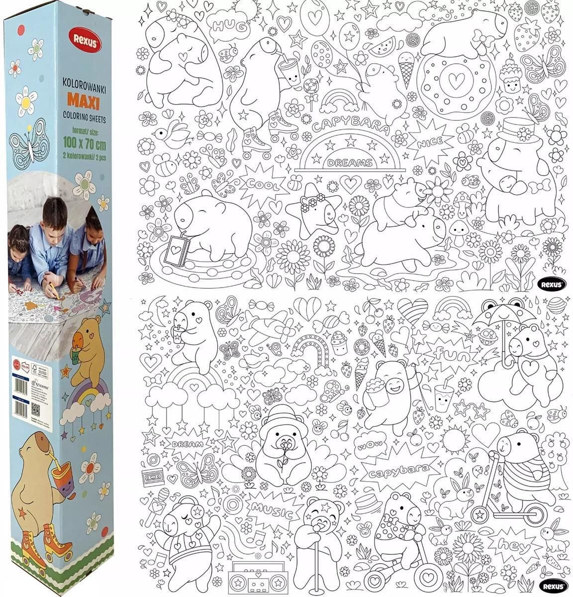 KOLOROWANKA PODŁOGOWA KAPIBARA 50X70CM Producent: BENIAMIN Opakowanie: PUDEŁKO EAN: 5904441132670 Wielkoformatowa kolorowanka wykonana z grubego, białego papieru. Możliwość pracy kilku osób jednocześnie. Profesjonalna grafika, wyraźny druk w kolorze czarnym. Rolowany bez zagnieceń. W tekturowej tubie chroniącej przed zniszczeniem. Odpowiedni do kolorowania kredkami, flamastrami, markerami i farbami. KAPIBARA. Format 100x70 cm Zapraszamy do kreatywnego świata, gdzie każde dziecko może stać się artystą! Ta olbrzymia kolorowanka w rolce to niezwykła przygoda dla małych odkrywców i artystów. Rozwiń ją na podłodze, stole lub przytwierdź do ściany i daj się ponieść wyobraźni. Z mnóstwem szczegółowych ilustracji przedstawiających magiczny świat pełen fantastycznych postaci i scenerii, ta kolorowanka zapewnia godziny twórczej zabawy. Kolorowanie ma wiele zalet, zarówno dla dzieci, jak i dla dorosłych. Oto kilka głównych zalet tej aktywności: Rozwija kreatywność: Kolorowanie pozwala wyrazić swoją wyobraźnię poprzez wybieranie kolorów i tworzenie własnych wzorów. To świetny sposób na rozwijanie kreatywności i pomysłowości. Relaksuje: Kolorowanie działa relaksująco i może pomóc w redukcji stresu i napięcia. Skupienie się na kolorowaniu może działać jak medytacja, pozwalając na oderwanie się od codziennych zmartwień. Poprawia koncentrację i motorykę: Kolorowanie wymaga precyzji i dokładności, co pomaga poprawić zdolności motoryczne i koncentrację, zwłaszcza u dzieci. Rozwija umiejętności edukacyjne: Dla dzieci kolorowanie może być sposobem na naukę rozpoznawania kształtów, kolorów i rozwijanie zdolności graficznych. Można także uczyć się nowych słów i pojęć, opisując kolory i obrazy. [Kod oferty,645763,5904441132670,2024-10-29 04:44:43]