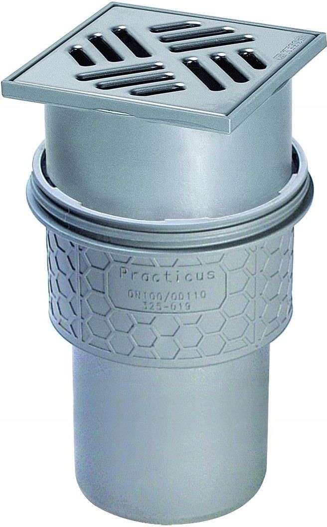 Wpust podłogowy/stropowy Practicus DN 100, pionowy, kratka szczelinowa Wpust podłogowy/stropowy Practicus z tworzywa sztucznego służy do odwodnienia punktowego i jest wyposażony w krawędź przyłączeniową oraz wyjmowany syfon, uszczelkę wargową i pokrywę ochronną na czas fazy budowlanej, z nasadą z …