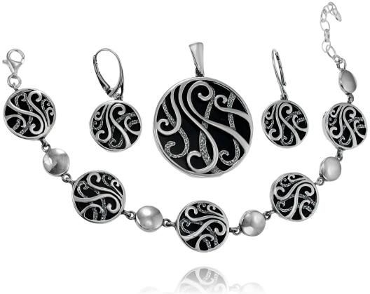 Srebrny Oksydowany Efektowny Komplet z Onyksem Onyksami Zakliczyn