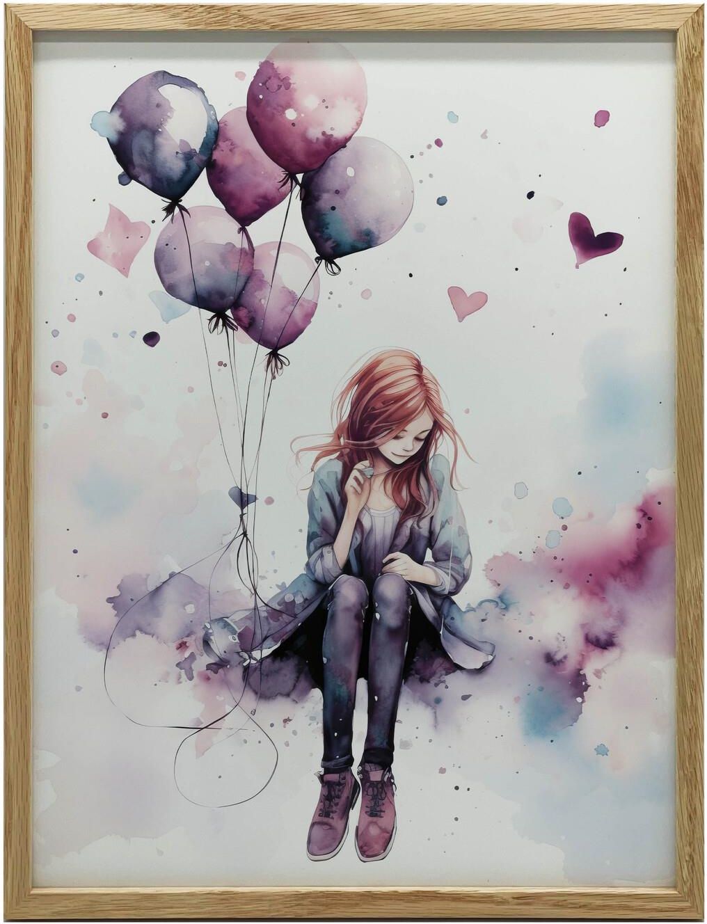 "Huśtawka w Krainie Balonów" to urokliwy plakat przedstawiający dziewczynkę huśtającą się na huśtawce zakończonej balonami, unoszącą się w chmurach. Wykonany w technice akwareli, obraz emanuje radością i beztroską, tworząc kolorową i magiczną atmosferę w dziecięcym pokoju. Pastelowe kolory oraz subtelne detale wprowadzają przyjemny klimat, inspirując do marzeń i wspaniałej zabawy. To doskonała dekoracja, która wniesie ciepło, uśmiech i wesołość do wnętrza, rozjaśniając każdy pokój i tworząc magiczne chwile oraz miłe wspomnienia.