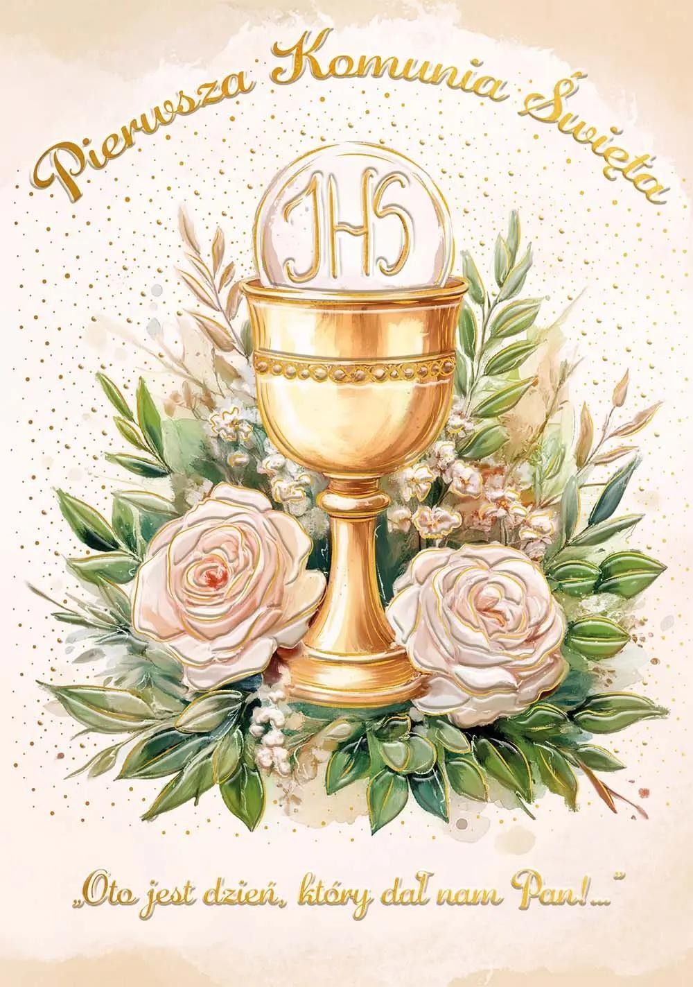 Karnet A5 Komunijny Kielich W Różach Zaklików
