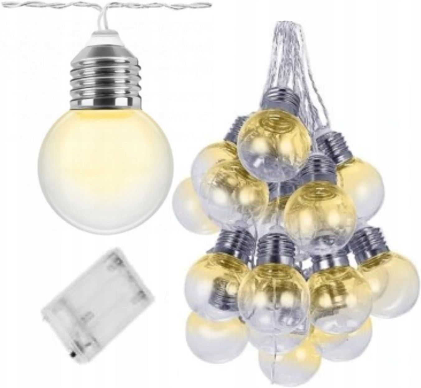 Girlanda na baterie 20x LED 3m - światło żółte ciepłe ✅ Piękna ozdoba typu RETRO na cały rok. ✅ Najwyższej jakości 20 lampek LED. ✅ Lampki charakteryzują się bardzo długą żywotnością. ✅ Nie zużywają energii elektrycznej, posiadają zasilane bateryjnie - takie źródło pozwala użyć ich również tam gdzie nie mamy dostępu bezpośrednio do sieci. ✅Dodają atmosfery, można nimi przyozdobić praktycznie każdy element naszego ogrodu, czy domu - w każdym miejscu będą wyglądały pięknie. ✅ Lampki emitują żółte ciepłe światło. ✅ Wykonane są z tworzywa sztucznego, dzięki czemu są dużo bardziej odporne na czynniki fizyczne, nie tłuką się oraz pozwolą na długoletnią pracę. ✳️ Nadają się idealnie na: ✔️ Boże Narodzenie ✔️ Halloween ✔️ Sylwestra ✔️ Walentynki ✔️ festiwale i wesela. ✳️ Można je zainstalować na: ✔️ małych roślinach doniczkowych, ✔️ choinkach, ✔️ w salonie, ✔️ sypialni, ✔️ na schodach, ✔️w ogrodach i innych miejscach. ✳️ Specyfikacja: ✔️ długość przewodu z żarówkami LED: 3 m ✔️ długość wraz z przewodem zasilającym: 5,2 m ✔️ Moc: 1.2W ✔️ Kolor: ciepły ✔️ Ilość LED: 20 ✔️ Źródło zasilania: bateryjne; 1,5V 3x AA(brak w zestawie) ✔️ Wymiary żarówki (dł/szer/wys): 5/5/8cm ✔️ Efekt lampy: 0.6W ✔️ Napięcie: 24V DC 4.5V