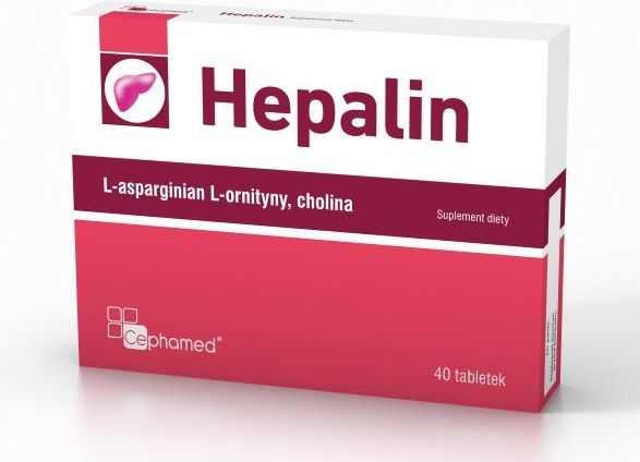 Hepalin Pomoc dla wątroby Cholina pomaga w prawidłowym funkcjonowaniu wątroby oraz przyczynia się do utrzymania prawidłowego metabolizmu tłuszczów. Uzupełnia dietę w składniki korzystnie wpływające na wątrobę. Sposób użycia: Tabletki należy połknąć w całości, popijając wodą. Nazwa składnika Zawartość w 1 tabletce Zawartość w 2 tabletkach Zawartość w 6 tabletkach L-asparaginian L-ornityny * 100 mg 200 mg 600 mg Cholina* 35 mg 70 mg 210 mg * RWS nie została określona Zalecana dzienna porcja do spożycia: Dorośli 1-2 tabletki 3 razy dziennie, popijając dużą ilością wody. Warunki przechowywania: Przechowywać w oryginalnym opakowaniu w temperaturze pokojowej. Chronić przed światłem i wilgocią. Suplementy diety powinny być przechowywane w sposób niedostępny dla małych dzieci. Składniki: Celuloza mikrokrystaliczna-substancja wypełniająca, L-asparaginian L-ornityny, wodorocytrynian choliny, sole magnezowe kwasów tłuszczowych (substancja przeciwzbrylajaca), dwutlenek krzemu. Ostrzeżenia: Suplementy diety nie mogą być stosowane jako substytut (zamiennik) zróżnicowanej diety. Nie przekraczać zalecanej dziennej porcji. Nadmierne spożycie może zagrażać zdrowiu. Dla zachowania prawidłowego stanu zdrowia duże znaczenie ma zbilansowana i zróżnicowana dieta oraz zdrowy tryb życia. Produkt przeznaczony dla osób dorosłych.