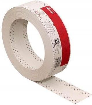 Taśma AMERYKAŃSKA TUFF-TAPE Długość: 10MB Taśma AMERYKAŃSKA TUFF-TAPE ZASTOSOWANIE TAŚMY TUFF-TAPE Taśmę TUFF-TAPE stosuje się do łączeń płyt kartonowo-gipsowych na płaskich powierzchniach (takich jak sufit czy ściany) w miejsce siatki, flizeliny, taśmy papierowej, taśmy papierowej z wkładką aluminiową oraz do wykańczania rogów wewnętrznych. Taśma jest doskonała do maskowania pęknięć i rys na sufitach i ścianach, a także do napraw powierzchni, gdzie siatka lub papier uległy zniszczeniu. TUFF-TAPE, ze względu na brak reakcji z wodą, znajduje zastosowanie w miejscach narażonych na wilgoć, tam gdzie taśma papierowa mogłaby ulec zniszczeniu (np. w okolicach wanien i pryszniców). ZALETY TAŚMY TUFF-TAPE - Niezwykle trwała – nie pęka. - Doskonale maskuje pęknięcia płyt. - Łatwa i szybka w montażu. - Posiada unikalną strukturę tworzącą sztywne i gładkie powierzchnie. - Zapewnia proste linie rogów wewnętrznych. - Odporna na działanie wody i rdzy (nie pęcherzy się). - Wydajna gdyż pozwala na wykorzystanie 100% materiału. - Wielokrotnie mocniejsza niż zwykła taśma papierowa. - Pozwala na pokrycie dowolna farbą. - Nie wymaga stosowania dodatkowych narzędzi, jak spinacze czy taśmy montujące. - Wygodna w użyciu, transporcie i przechowywaniu dzięki nawinięciu na rolkę. SPOSÓB UŻYCIA 1. Utnij taśmę na odpowiednią długość i przytnij końcówki pod kątem 45 stopni. 2. Zastosuj masę gipsową (z wyjątkiem gipsów szybkoschnących np. gipsu budowlanego). 3. W celu przyklejenia taśmy zastosuj masę gipsową i umieść taśmę TUFF-TAPE w miejscu przeznaczenia. 4. W przypadku rogów wewnętrznych – złóż taśmę w połowie, następnie delikatnie wyprostuj i przyklej, dociskając do rogu wewnętrznego. Dopasuj taśmę tak, aby stworzyć prostą linię rogową na załamaniu. 5. Usuń nadmiar masy gipsowej za pomocą szpachelki, nie pozostawiając pęcherzyków powietrza pod taśmą. 6. Pokryj taśmę cienką warstwą masy gipsowej o grubości około 1 mm, wyrównując z płaszczyzną ściany, pozostaw do wyschnięcia. 7. W przypadku rogów wewnętrznych – nie wypełniaj samego rogu masą gipsową po zainstalowaniu taśmy. Pozwoli to zachować prostą linię rogową. 8. W razie potrzeby zastosuj ponownie masę gipsową i pozostaw do wyschnięcia. 9. Wyrównaj nierówności papierem ściernym o gradacji, co najmniej 180. 10. Wewnętrzną linię zagięcia taśmy przeszlifuj krawędzią zgiętego papieru ściernego. 11. Przy utworzeniu płaskiej powierzchni z płyt karton-gips w miejscu ich łączenia zakończonego oryginalną fazą, które łączy się z inną ścianą podróżnym kątem, taśmę zastosowaną w rogu wewnętrznym lub zewnętrznym, należy założyć na taśmę łączącą płyty które stanowią płaską powierzchnię. 12. Przy utworzeniu płaskiej powierzchni z płyt karton-gips, które nie posiadają fazy. W miejscu ich łączenia z inną ścianą pod różnym kątem, taśmę łączącą płyty stanowiącą płaską powierzchnię należy dosunąć na styk do taśmy zastosowanej w rogu wewnętrznym lub zewnętrznym. W obu powyższych przypadkach pozwoli to nam uniknąć skrzywienia linii rogowej.