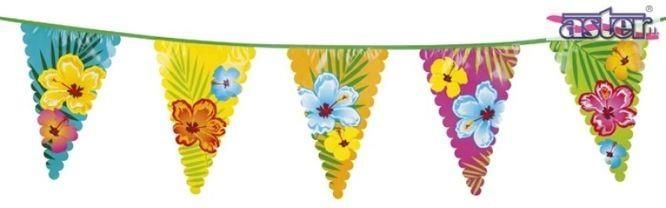 Girlanda z flagami Hibiscus Aloha to doskonały element dekoracyjny, który wprowadzi wakacyjny nastrój w każde miejsce. Jej długość całkowita wynosi 6 m, a flagi mają wymiary 45,5 cm długości oraz 31 cm szerokości. W zestawie znajduje się 10 kolorowych flag, które wprowadzą radosne akcenty do Twojej imprezy, ogrodu czy wnętrza. Idealny wybór na letnie przyjęcia, grillowanie czy tematyczne imprezy w stylu hawańskim.