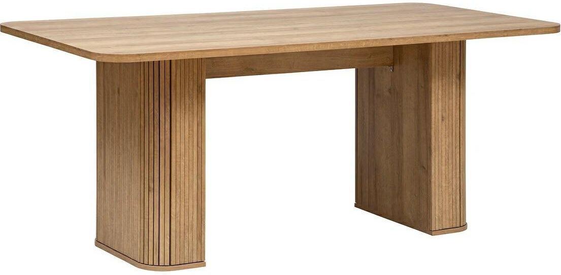 Stół do jadalni Colva 180x90 cm marki Atmosphera to nowoczesny, prostokątny stół o naturalnym wykończeniu, który doskonale sprawdzi się w przestronnej jadalni, kuchni lub salonie. Wyróżnia się imponującą szerokością 180 cm i głębokością 90 cm, co pozwala komfortowo zorganizować posiłki nawet dla ośmiu osób. Naturalny kolor i efekt dębu na blacie nadają mu subtelny, przytulny charakter, a solidna konstrukcja oparta na dwóch szerokich nogach zapewnia stabilność i trwałość na lata. Nowoczesny styl skandynawski – ciepło i lekkość we wnętrzu Colva to stół do jadalni inspirowany ponadczasowym stylem skandynawskim, który łączy prostotę formy z funkcjonalnością. Naturalny odcień wykończenia i efekt dębu sprawiają, że świetnie wpisuje się w jasne, minimalistyczne aranżacje, wprowadzając do wnętrza przyjemną atmosferę i harmonię. Prostokątny blat o grubości 2,5 cm wygląda solidnie, a jednocześnie zachowuje lekkość dzięki smukłym liniom. To idealny wybór dla osób ceniących nowoczesny design i przytulny klimat w domu. Stół na rodzinne spotkania i codzienne posiłki Duża powierzchnia blatu pozwala wygodnie ustawić nakrycia dla 6 do 8 osób, dzięki czemu Colva doskonale sprawdzi się podczas rodzinnych obiadów, kolacji z przyjaciółmi czy świątecznych uroczystości. Wysokość stołu 75 cm zapewnia wygodę siedzenia dla dorosłych i dzieci, niezależnie od wybranych krzeseł. To uniwersalny stół do salonu lub kuchni, który stanie się sercem domowych spotkań, dając przestrzeń zarówno do wspólnych posiłków, jak i kreatywnych zabaw czy pracy zdalnej. Dlaczego warto wybrać stół Colva? Efekt dębu na blacie – wygląda naturalnie i dodaje wnętrzu ciepła Solidna podstawa na dwóch szerokich nogach – gwarancja stabilności nawet przy większych obciążeniach Duży prostokątny blat (180x90 cm) – wygoda dla całej rodziny i gości Nowoczesny styl skandynawski – łatwo dopasujesz do różnych aranżacji Prosty montaż – szybko przygotujesz stół do użytku w swoim domu Stół, który zostaje z Tobą na dłużej Stół Colva marki Atmosphera to inwestycja w codzienny komfort i styl. Naturalny kolor oraz starannie dobrane materiały sprawiają, że mebel jest odporny na codzienne użytkowanie i łatwy do utrzymania w czystości. To idealny wybór, jeśli szukasz stołu do jadalni, który połączy funkcjonalność z nowoczesnym designem, tworząc wyjątkową przestrzeń do wspólnego spędzania czasu.