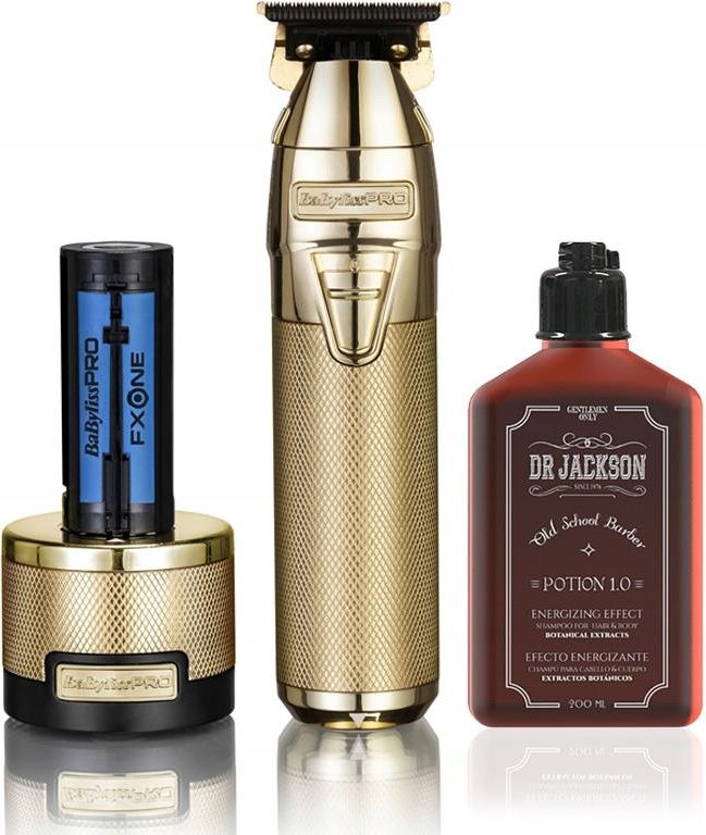 Odkryj moc i precyzję BaByliss PRO Skeleton FXONE Gold. Idealny do stylizacji zarostu i brody. Sprawdź naszą ofertę już teraz! BaByliss PRO Skeleton FXONE Gold Trymer do Włosów i Brody FX799GE BaByliss PRO FXONE All-Metal to profesjonalne narzędzie, które łączy nowoczesny design z zaawansowaną technologią, tworząc idealne rozwiązanie dla fryzjerów i barberów. Dzięki niezwykłej precyzji i mocy, trymer ten z łatwością radzi sobie z najgrubszymi włosami, umożliwiając osiągnięcie doskonałych efektów stylizacji. Kluczowe cechy trymera Ostrze Gold Titanium T: W pełni odsłonięte ostrze z ząbkami o standardowej głębokości zapewnia wyjątkową precyzję cięcia. Regulacja ostrza do zera pozwala na tworzenie perfekcyjnych krawędzi i detali, co jest kluczowe w pracy profesjonalisty. Wydajny silnik cyfrowy: Bezszczotkowy silnik o wysokim momencie obrotowym (7200 obr./min) utrzymuje stałą prędkość, co znacząco ułatwia pracę z gęstymi włosami i zwiększa efektywność stylizacji. Nowa wymienna bateria FXONE: Litowo-jonowa bateria oferuje do 3 godzin pracy po zaledwie 2 godzinach ładowania, co czyni go idealnym rozwiązaniem do intensywnego użytkowania w salonach fryzjerskich. Wskaźnik LED: 4-stopniowy pierścień LED informuje o poziomie naładowania, dzięki czemu zawsze masz pełną kontrolę nad pracą urządzenia. Ergonomiczna konstrukcja Ergonomiczny uchwyt: Radełkowana metalowa powierzchnia oraz wgłębienie na palce zapewniają wygodny i pewny chwyt podczas stylizacji, co minimalizuje ryzyko zmęczenia dłoni. Zdejmowana magnetyczna klapka: Ułatwia czyszczenie oraz konserwację narzędzia, co jest kluczowe dla jego długowieczności i wydajności. Zwężana podstawa: Z ukrytym haczykiem do zawieszania, ułatwia przechowywanie w salonie fryzjerskim oraz pozwala na oszczędność miejsca. W zestawie Wymienna bateria FXONE. Baza ładująca o podwójnym napięciu. Zapasowa gąbka do ostrza. Osłona ostrza. Śrubokręt oraz narzędzie do regulacji ostrza. Szczoteczka do czyszczenia oraz olej smarujący. Specyfikacja techniczna Czas pracy: 3 godziny. Czas ładowania: 2 godziny. Silnik: cyfrowy, o wysokim momencie obrotowym, 7200 obr./min. Ostrze: Gold Titanium T, regulowane do zera. Obudowa: całkowicie metalowa, zaprojektowana dla lepszej trwałości. Kolor: Gold - złoty. BaByliss PRO FXONE All-Metal to narzędzie, które łączy w sobie niezawodność, wydajność i precyzję. Idealnie sprawdzi się w każdym salonie fryzjerskim, umożliwiając tworzenie perfekcyjnych fryzur oraz stylizacji zarostu. Daj swojemu warsztatowi pracy nową jakość dzięki temu profesjonalnemu trymerowi!