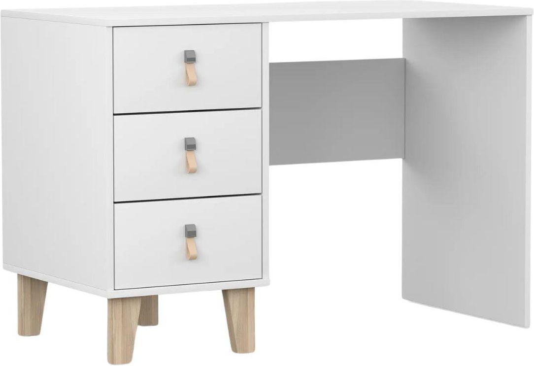 Biurko Figo 3S białe – 3 szuflady, skórzane uchwyty, 110x75x55 cm Zakroczym