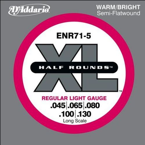 Coined the “third type of string,” XL Half Rounds bass strings are an excellent medium between round wound and flat wound strings. Half Rounds have a smoother feel than round wound strings, but a fuller tone than strings that are flat wound. Made with a high carbon steel core and pure nickel wrap wire, they’re finished with a precision grinding process to provide a smooth feel and reduced finger noise, with tone that's comparable to round wound bass strings. Made for 5-string basses, 45-130 Regular Light gauge strings take our most popular bass gauge and add a low B-string. D'Addario Half Rounds bass strings are round wound with pure nickel, then precision ground, leaving the outer surface smooth and semi-flat. The result is a string with the tone and tension of round wound strings, plus a smoother feel, like that of flat wound. Half Rounds bass strings are an innovative combination of round and flat wound strings, providing benefits of both. Pure nickel wrap wire is finished with a centerless grinding process to provide a smooth feel, reduced finger noise, and tone comparable to round wound bass strings. Like all D’Addario bass guitar strings, XL Half Rounds are made with our proprietary Hex-Core, ensuring perfect intonation, consistent feel, and reliable durability. XL Half Rounds sets have a code on the recyclable VCI bag, which you can register to earn Players Circle points. D’Addario bass strings are made in the USA—drawn to our exacting specifications at our New York production facility. Environmentally friendly, corrosion resistant packaging for strings that are always fresh