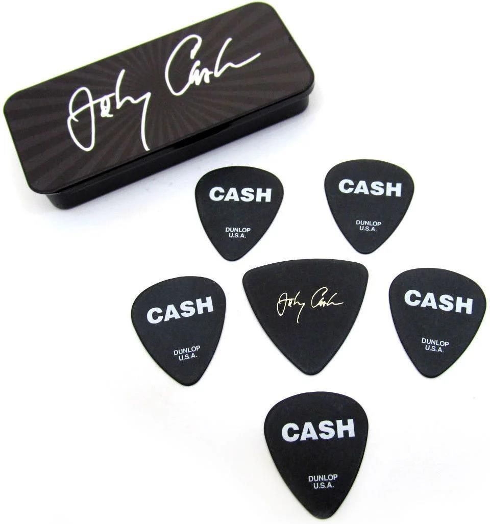 Johnny Cash Collector PicksZestaw picków składający się z 6 elementów wraz z metalowym pudełkiem Wersja: Signature z 6 różnymi motywami amerykańskiej legendy Gauge: MediumMade U.S.A. Nr artykułu: 277192 Zestaw kostek gitarowych w blaszanym etui z serii Johnny Cash Signature. Ten kolekcjonerski zestaw zawiera sześć kostek i zamykane blaszane etui z podpisami Johnny'ego Casha. Kostki Dunlop są znane ze swojej długiej żywotności i doskonałej stabilności wymiarowej. Grubość.