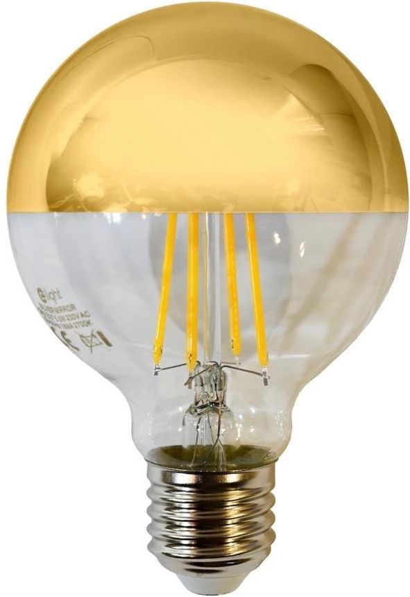 Żarówka LED filament złota kulka 5W E27 ciepła barwa światła Eko-light W połowie pozłącana filamentowa żarówka LED to oszczędne źródło światła, perfekcyjnie sprawdzające się jako element dekoracji. Pozłacany wierzchołek żarówki nadaje jej niepowtarzalny wygląd oraz pozwala chronić nasze oczy przed …