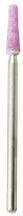 Frez kamienny do paznokci i skórek w kształcie stożka. Kolor różowy. Model 649. Przeznaczony do opracowywania płytki paznokciowej i skórek. Kolor różowy oznacza, że głowicę frezu wykonano z kamienia syntetycznego, który jest delikatniejszy od naturalnego. Trzpień frezu, z najwyższej jakości stali, zapewni długie użytkowanie. . Parametry: Długość całkowita: 4
