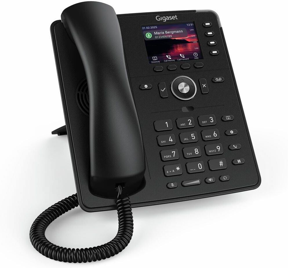 Gigaset P710 IP PRO telefon biznesowy biurkowy, 2,8" 4M 2xGB Kompaktowy telefon biurkowy IP dla każdego miejsca pracy Kolorowy wyświetlacz TFT 2,8" (320x240) 4 dowolnie programowalne przyciski funkcyjne Zestaw głośnomówiący z dźwiękiem HD Etykieta ekranowa Złącze słuchawkowe 2-portowy przełącznik Gigabit Ethernet (RJ45) z funkcją Power over Ethernet (PoE) Gwarancja 24 miesiące Gigaset P710 IP PRO to kompaktowy i przystępny cenowo model podstawowy w portfolio profesjonalnych telefonów biurkowych IP Gigaset. Dzięki eleganckiemu wzornictwu i niewielkim rozmiarom, urządzenie idealnie pasuje do każdego biurka i miejsca pracy. Urządzenie posiada wiele przydatnych funkcji biznesowych, oferuje doskonałą jakość dźwięku HD oraz kolorowy wyświetlacz o wysokiej rozdzielczości z 4 dowolnie programowalnymi przyciskami funkcyjnymi LED. Gigabitowy przełącznik z obsługą PoE uzupełnia zakres funkcji P710 IP PRO. 4 programowalne przyciski funkcyjne LEDPrzyciski można skonfigurować zgodnie z własnymi życzeniami i wymaganiami. Przydatne funkcje, takie jak szybkie wybieranie, bezpośrednie wybieranie lub bezpośrednie wybieranie, można przypisać bezpośrednio do każdego z czterech przycisków. Oznacza to, że wszystkie funkcje potrzebne w miejscu pracy są na wyciągnięcie ręki. Wielokolorowe diody LED wskazują status połączenia lub obecności. Gigaset P710 IP PRO wykorzystuje inteligentne etykiety do oznaczania przycisków funkcyjnych. Inteligentne etykiety zapewniają, że wszystkie informacje na klawiszach funkcyjnych są łatwe do odczytania, nawet jeśli wyświetlacz jest raczej kompaktowy. Kolorowy wyświetlacz TFT o wysokiej rozdzielczościKolorowy wyświetlacz TFT o przekątnej 2,8 cala i rozdzielczości 320 x 240 pikseli gwarantuje optymalną czytelność w każdym świetle. Oznacza to, że wszystkie ważne informacje są zawsze pod ręką. Wyjątkowa jakość dźwiękuGigaset P710 IP PRO oferuje najwyższą jakość dźwięku. Jest wyposażony w dźwięk HD, a także działa z zaawansowaną redukcją szumów. Oznacza to, że zawsze wyraźnie słyszysz swojego rozmówcę, nawet w hałaśliwym otoczeniu. Urządzenie jest również kompatybilne z aparatami słuchowymi.