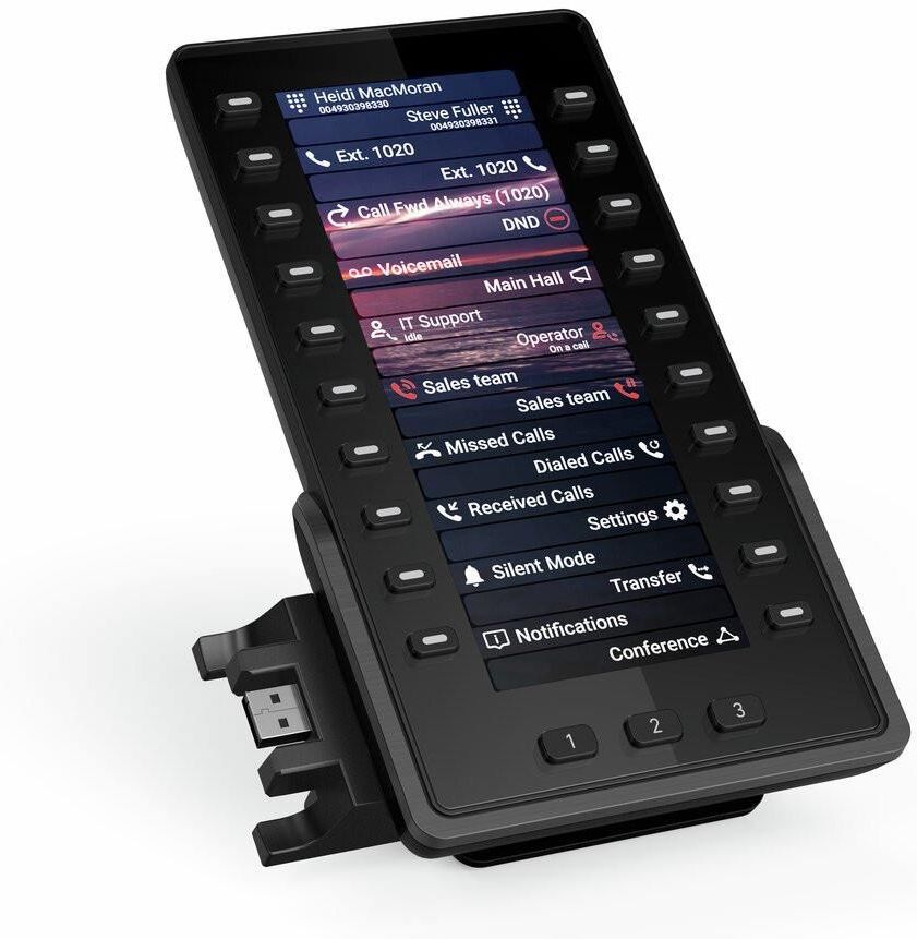 Gigaset P800 KEY PRO Konsola moduł rozszerzający do telefonów Gigaset IP z serii P8xx Gigaset P800 KEY PRO to potężny moduł rozszerzający dla profesjonalnych telefonów stacjonarnych IP Gigaset. Oferuje 20 fizycznych przycisków funkcyjnych z wyświetlaczem LED stanu i obsługuje do 60 indywidualnie przypisywanych funkcji - idealnych dla recepcji, stanowisk pomocy i osób często dzwoniących. Dzięki 6,8-calowemu kolorowemu wyświetlaczowi o wysokiej rozdzielczości użytkownicy zawsze mają wgląd w sytuację. Podłączenie jest proste przez USB - plug play. Moduł jest kompatybilny z modelami Gigaset P810, P810B, P820, P825, P850W i P855BW IP PRO. Kolorowy wyświetlacz TFT o przekątnej 6,8" (17,2 cm) Moduł rozszerzeń z 60 (20 fizycznymi) programowalnymi przyciskami Łatwe połączenie Plug-and-Play z telefonem stacjonarnym przez USB Kompatybilny z Gigaset P810 IP PRO, P810B IP PRO, P820 IP PRO, P825 IP PRO, P850W IP PRO, P855BW IP PRO Do jednego telefonu stacjonarnego można podłączyć maksymalnie trzy moduły klawiszy