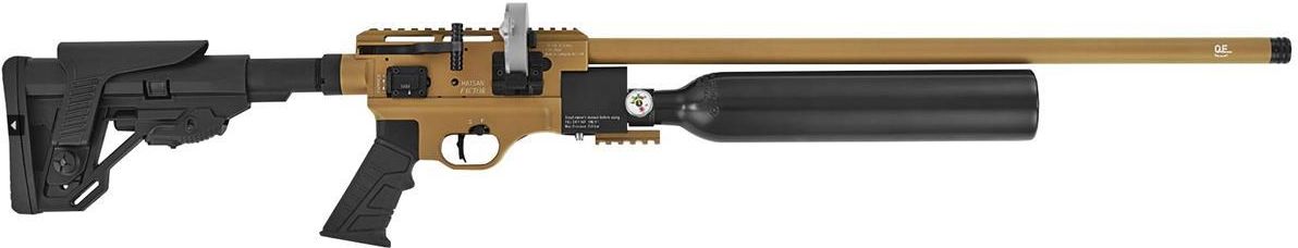 Optima by Hatsan Factor FDE 6,35 mm to karabinek PCP w militarnym stylu, wyposażony w precyzyjną czokowaną lufę, taktyczną kolbę z regulowaną stopką oraz 2-stopniowy mechanizm spustowy z regulacją języka spustowego. Osada w wojskowej kolorystyce flat dark earth. Wiatrówki Optima produkowane są …
