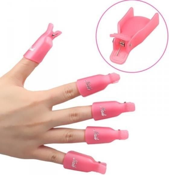 Klipsy do zdejmowania manicure hybrydowego Oferujemy zestaw 10 klipsów do ściągania hybrydy. Zestaw wielokrotnego użytku umożliwia łatwe usuwanie lakieru hybrydowego oraz innych form zdobienia paznokci takich jak akryl, żel czy tradycyjny lakier do paznokci. Klipsy wykonane są z odpornego na aceton i zmywacze tworzywa. ✅ OSZCZĘDNOŚĆ PIENIĘDZY - klipsy są wielokrotnego użytku; mogą być wielokrotnie używane zarówno w domu jak i w profesjonalnym salonie. ✅ ŁATWE W UŻYCIU - wystarczy włożyć do klipsa wacik ze zmywaczem (acetonem), a następnie zacisnąć go na palcu; ściąganie lakieru trwa maksymalnie 10 minut! ✅ ANTYPOŚLIZGOWE - posiadają wypustki antypoślizgowe, dzięki czemu klipsy pozostają stabilnie na paznokciach Klipsy służą do dociśnięcia wacika z acetonem do płytki paznokcia. By oczyścić paznokcie wystarczy zamoczyć wacik w rozpuszczalniku, nałożyć na paznokcie (zmatowione wcześniej pilnikiem) a następnie docisnąć całość klipsem i odczekać max 10 minut. Klipsy skutecznie i solidnie dociskają waciki jednocześnie chroniąc palce.
