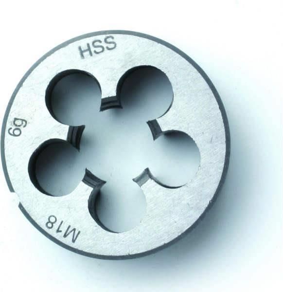 Narzynka DIN 223 (EN22586) HSS, gwint metryczny M, kształt zamknięty, z rowkiem w obwodzie. Wykonanie w tolerancji 6g. Bez pokrycia. Do gwintów metrycznych według ISO DIN 13.