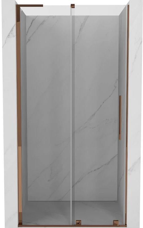 Specyfikacja produktu Rozmiar: 100x200 cm Montaż: Uniwersalny Wejście: Rozsuwane Kolor szkła: Transparentne Wykończenie: Różowe złoto Rodzaj szkła: Hartowane Grubość szkła: 8 mm Profil: Aluminiowy Stabilizator kątowy L: Stal nierdzewna Powłoka ułatwiająca czyszczenie Niwelacja nierówności ściany …