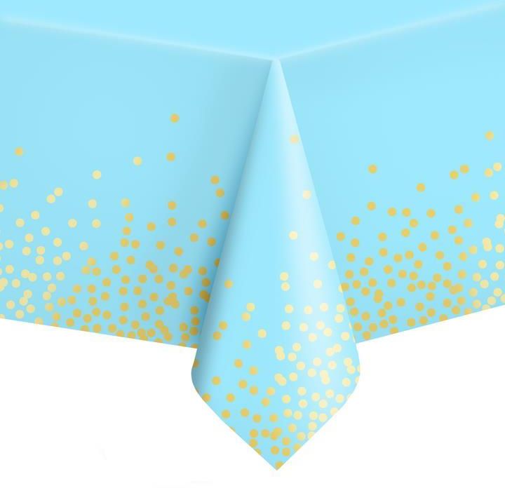 Elegancki obrus w kolorze niebieskim z motywem konfetti o wymiarach 137 cm x 274 cm, idealny na uroczystości urodzinowe oraz różnorodne imprezy plenerowe i rodzinne. Wykonany z wysokiej jakości materiałów, zapewnia trwałość i estetyczny wygląd, dodając wyjątkowego charakteru każdej okazji. Doskonały do dekoracji stołów, świetnie komponuje się z różnorodnymi aranżacjami i dodatkami. Uczyń swoje przyjęcie niezapomnianym z tym oryginalnym obrusem!