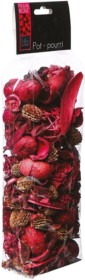 Pot pourri/suszone kwiaty zapach malina 140g Pot pourri to perfekcyjny sposób na dodanie subtelnego, naturalnego aromatu do Twojego domu. Wykorzystując bogactwo natury, zapachowy zestaw składa się z suszonych kwiatów i roślin. Zapach przenosi Cię do magicznego ogrodu, gdzie malina unosi się w powietrzu, otulając Cię swoją ciepłą i kojącą woń. To idealne połączenie ziemi i natury, które wprowadza do Twojego domu harmonię i spokój. Każda sztuka Pot pourri jest starannie wykonana, a jej konsystencja i kolorystyka zachwycają zmysły. Umieszczając aromatyczny dodatek w misach, wazonach czy szufladach, możesz cieszyć się jego urokiem w każdym kącie swojego domu. Uwolnij swoją dekoratorską moc, dodając do swojego otoczenia ten magiczny Pot pourri. Pozwól sobie na chwilę relaksu i odprężenia, oddając się przyjemności zmysłowego doświadczenia aromaterapii, które oferuje ten wyjątkowy produkt. Upewnij się, że to dobry wybór! Zestaw zawiera suszone kwiaty i rośliny, które dodają harmonii i spokoju do wnętrza domu. Można umieścić w misach, wazonach czy szufladach, aby cieszyć się aromatem w różnych miejscach domu. Produkt pozwala na kreatywne aranżacje wnętrz, dodając im wyjątkowego uroku. Zapewnia zmysłowe doświadczenie aromaterapii, zapewniając chwilę wytchnienia i przyjemności.