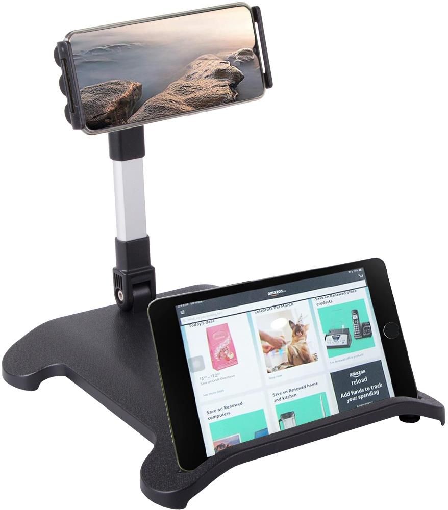 PODSTAWKA STOJAK POD TELEFON NA TABLET UCHWYT TELESKOPOWY 2w1 Dwa miejsca na tablety lub telefony pozwalają na jednoczesne korzystanie z dwóch urządzeń, co jest niezwykle przydatne, gdy potrzebujesz porównywać informacje, przeglądać treści lub pracować na obu urządzeniach jednocześnie. Dzięki podstawce możesz ustawić swoje tablety i telefony na odpowiedniej wysokości i kącie, co redukuje napięcie w karku i plecach podczas korzystania z urządzeń. To ważne, szczególnie podczas długotrwałego korzystania z tabletów lub telefonów. Ta podstawka jest kompatybilna z wieloma różnymi rodzajami tabletów i telefonów, co oznacza, że możesz ją wykorzystywać z różnymi urządzeniami bez konieczności zakupu wielu osobnych akcesoriów. SPECYFIKACJA TECHNICZNA:✅ Kod produktu: 04125✅ Pasuje na urządzenia w przedalie 5,1" - 6,8"✅ Wielozadaniowy✅ Stabliny✅ Ogumowane nóżki✅ Idealny do smartfonów oraz tabletów✅ Możliwość regulacji statywu: szerokości i nachylenia✅ Kolor: czarno-srebrny WYMIARY:✅ Wymiary podstawy: 29cm x 26cm✅ Wysokość: 25cm - 34cm✅ Szerokość uchwytu: 6cm✅ Długość uchwytu: 11,5cm-16cm ZESTAW ZAWIERA:☑️ Fabrycznie nowy stojak☑️ Oryginalne opakowanie