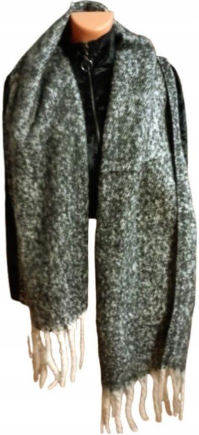 PUSZYSTY SZALIK SZAL GRUBY Z FRĘDZLAMI MIĘKKI CIEPŁY SZARO CZARNY DUŻY Zakroczym