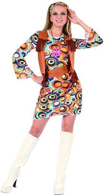 Strój Hipiski – Karnawałowy Zestaw w Stylu Retro Przygotuj się na niezapomniane chwile w stylu lat 60. dzięki naszemu stroju hipiski! Ten kolorowy zestaw inspirowany epoką miłości i pokoju sprawi, że każda impreza karnawałowa, tematyczna lub przebierana będzie pełna pozytywnej energii. Wyraziste wzory, charakterystyczne dodatki i niezwykła dbałość o detale – to wszystko znajdziesz w naszym kompletnym zestawie hipiski. Cechy produktu Zestaw zawiera: sukienkę, kamizelkę, opaskę na głowę, pasek oraz zawieszkę na szyję. Sukienka z długim rękawem ozdobiona nadrukiem kolorowych kółek – idealna na każdą okazję. Brązowa kamizelka oraz pasek podkreślają styl retro, dodając autentyczności Twojej stylizacji. Opaska na głowę dopasowana kolorystycznie do całego stroju, nadająca pełen charakter wyglądowi. Zawieszka w kształcie pacyfki – symbol pokoju i miłości, doskonałe uzupełnienie hipisowskiego stroju. Wyjątkowy strój na każdą okazję Strój hipiski to idealny wybór na karnawał, imprezy tematyczne, a także na festiwale w stylu retro. Kolorowe wzory i wygodna tkanina zapewniają swobodę ruchów i świetne samopoczucie przez cały czas noszenia. Dzięki dodatkom takim jak kamizelka, opaska i zawieszka, ten strój jest kompletny i gotowy do założenia od razu po rozpakowaniu. Dodatkowe informacje Kolor sukienki: wielokolorowy z dominującymi wzorami kółek. Kolor kamizelki i paska: brązowy. Wyróżnij się na każdej imprezie dzięki naszemu kostiumowi hipiski i poczuj magię epoki dzieci kwiatów!