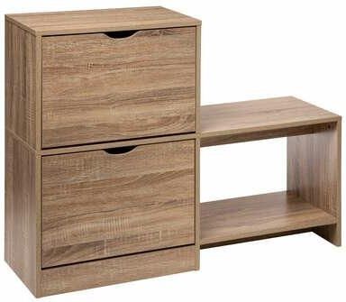 Szafka na buty Tiro z półką | 5five simply smart Minimalistyczna i elegancka szafka na buty Tiro od 5five simply smart to idealne rozwiązanie do przechowywania. Z dwoma szufladami oraz półką, aby pomieścić wiele par butów, wykonana została z płyty wiórowej. Nowoczesna szafka na buty Tiro to modny dodatek do każdego przedpokoju. Fachowo wykonana z elementów płyty wiórowej dla lekkiej i wytrzymałej konstrukcji, ma minimalistyczny design, który z pewnością przyciągnie uwagę Twoich gości. Dzięki dwóm szufladom otwieranym do przodu, z łatwością pomieści kilka par butów - idealna do każdego przedpokoju! Dodatkowo, wygodne wycięcia ułatwiają otwieranie szafek, gdy jesteś w ruchu. Nie szukaj dalej - elegancka szafka na buty Tiro to idealny element organizacyjny dla nowoczesnego domu. O tym warto pamiętać! Dodaj eleganckie rozwiązanie do przechowywania w swoim przedpokoju dzięki szafce na buty Tiro Uporządkowane i łatwe do znalezienia buty dzięki dwóm szufladom otwieranym do przodu W pełni skonstruowana z elementów płyty wiórowej dla trwałej wytrzymałości Łatwy dostęp i stylowy wygląd dzięki wygodnym wycięciom na frontach Oszczędność miejsca w przedpokoju bez poświęcania stylu