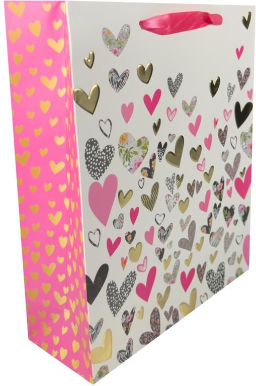 Torebka Prezentowa Z Serduszkami Biała 260X100X320 70192BIA Zakroczym