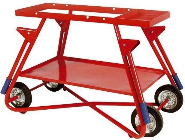 Wózek wyposażony w 4 kółka i uchwyty do transportu. Waga: 31.5 kg Do gwinciarki: 162140. Ułatwiony transport gwinciarki. Ułatwione przemieszczanie po chodniku. Półka na przechowywanie narzędzi i złączek. Dostarczony z: 1 zestawem śrub mocujących.