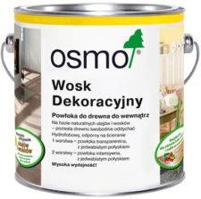 OSMO® WOSK DEKORACYJNY tworzy powlokę o jedwabistym połysku, łączący zalety naturalnych olejów roślinnych i wosków. Jest odporny na brud, wodę oraz odporny na ścieranie, a powierzchnia jest miła w dotyku. W porównaniu do tradycyjnych powłok w przypadku wosku Osmo powstaje jednolita i harmonijna barwa dzięki użytym składnikom roślinnym. Produkt jest łatwy w użyciu, nie wymaga gruntowania i międzyszlifu - oszczędza czas i pieniądze. Nie zatyka porów drewna, nie rozwarstwia się, nie pęka i nie łuszczy się. Jest odporny na zabrudzenia z wina, piwa, coli, herbaty, soków, mleka i wody. Powłoka po wysuszeniu jest nieszkodliwa dla ludzi, zwierząt i roślin (jest bezpieczną powłoką dla zabawek dziecięcych). Zastosowanie:Ściany, sufity, drzwi, listwy, belki, lignofol, płyty wiórowe i korek. Szczególnie polecany do gruntowania kolorem podłóg drewnianych oraz jako jedyna powłoka do drewna w pomieszczeniach o wysokiej wilgotności (kuchnia, łazienka). Idealny do mebli i zabawek drewnianych. Przygotowanie:Powierzchnia drewna musi być czysta, sucha i bez śladów zmrożenia (max. wilgotność drewna 20%). Osmo Wosk Dekoracyjny jest gotowy do użycia, nie rozcieńczać. Dobrze wymieszać. Oczyścić powłoki nie zatykające porów. Usunąć stare powłoki lakierowe. Wypełnić drobne pęknięcia i dziury w drewnie (Osmo Szpachlą do drewna). Powierzchnię drewna starannie wyszlifować. Przed olejowaniem dokładnie czyścić szlifowaną powierzchnię. Jeśli to możliwe, nanieść pierwszą warstwę z każdej strony prze montażem. Sposób użycia: Efekt przezroczysty barwiący: środek nakładać cienka warstwą przy pomocy twardego pędzla lub wałka Osmo zgodnie z kierunkiem słojów drewna, dokładnie rozsmarować. Pozostawić do wyschnięcia przy dobrej wentylacji. Aby uzyskać intensywniejszy kolor, cały proces powtórzyć (można nanieść maksymalnie 2 warstwy). Efekt lekko barwiący – efekt bejcowania: w ciągu 20 min. po nałożeniu wytrzeć szmatką lub białym Padem, zgodnie z kierunkiem słojów drewna. Pozostawić do wyschnięcia przy dobrej wentylacji. Efekt intensywnie barwiący: W tym celu polecamy Osmo Wosk Dekoracyjny Creativ. Ważne: W przypadku podłóg nakładać tylko 1 warstwę. Po gruntownym wysuszeniu należy nałożyć warstwę bezbarwnego Wosku Twardego Olejnego Osmo. Efekt malowania zależny jest m.in. od właściwości drewna, dlatego też zalecane jest wykonanie próby. Okres trwałości:5 lat lub dłużej, jeśli produkt przechowywany jest w suchych warunkach i jest szczelnie zamknięty. Jeśli produkt zgęstnieje pod wpływem mrozu, należy przechowywać go w temperaturze pokojowej na 24-36 godzin przed użyciem. Czas schnięcia:Ok. 24 h (temperatura 23oC, 50% wilgotności powietrza). W niskich temperaturach i/lub przy wysokiej wilgotności powietrza okres schnięcia wydłuża się. WAŻNE!!! Chronić przed dziećmi. Unikać zanieczyszczenia skóry i oczu. Zanieczyszczone oczy natychmiast przemyć dużą ilością wody i zasięgnąć porady lekarza. Tekstylia nasączone płynnym środkiem należy po ich użyciu natychmiast uprać lub przechowywać w szczelnie zamkniętym metalowym pojemniku (duże niebezpieczeństwo samozapłonu).