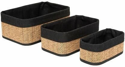 Zestaw 3 koszy z bambusa i czarnej tkaniny Zakroczym
