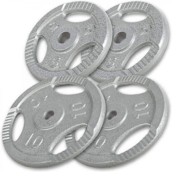 Zestaw obciążeń żeliwnych z uchwytem typ kierownica: 30 kg – 2x5kg, 2x10 kg Zakroczym