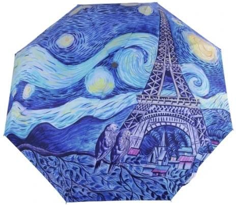 Parasolka składana z barwnym nadrukiem, która ochroni zarówno przed deszczem, jak i słońcem, gdyż posiada filtr UV UPF50+ Oprócz ochrony zapewni Ci świetny wygląd jako dodatek do stylizacji. Wzór - Vincent w Paryżu - Wieża Eiffla na tle nieba Vincenta van Gogha Parasolka premium marki Anuschka …