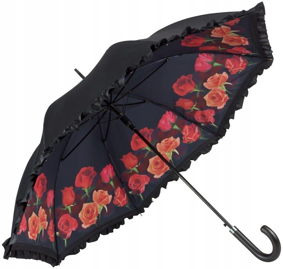 Parasol długi typu laska, bardzo elegancki i oryginalny produkt premium marki Von Lilienfeld. Spód ozdobiony jest przepięknym bukietem czerwonych róż, a krawędź czaszy obszyta falbaną. Poszycie z podwójnej warstwy solidnego materiału - poliestru pongee - który nie przepuści ani deszczu, ani …